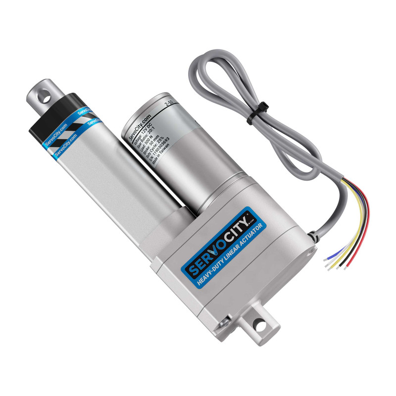 With the red and black lines explained above, you might wonder what the other three wires are for. Those three wires are there for the proverbial power-user who wants to tap into the positioning feedback! This linear actuator possesses a potentiometer that is driven by nylon gears. (“Nylon!?” It’s okay: no torque is being applied here!) If you’d like, you can use the three wires to tap into this potentiometer’s resistance to know precision information about the position of your linear actuator. And if that sounds cool, but also goes over your head, don’t worry! When it comes to plug-and-play linear actuator position control, we’ve done the “heavy lifting” for you in our unique line of Heavy-Duty Linear Servos.