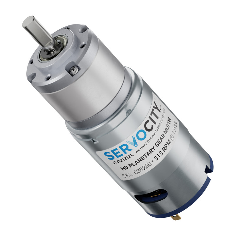 This 313 RPM brushed HD Premium Planetary Gear Motor packages a planetary gearbox and a 6mm D-shaft to drive your project.