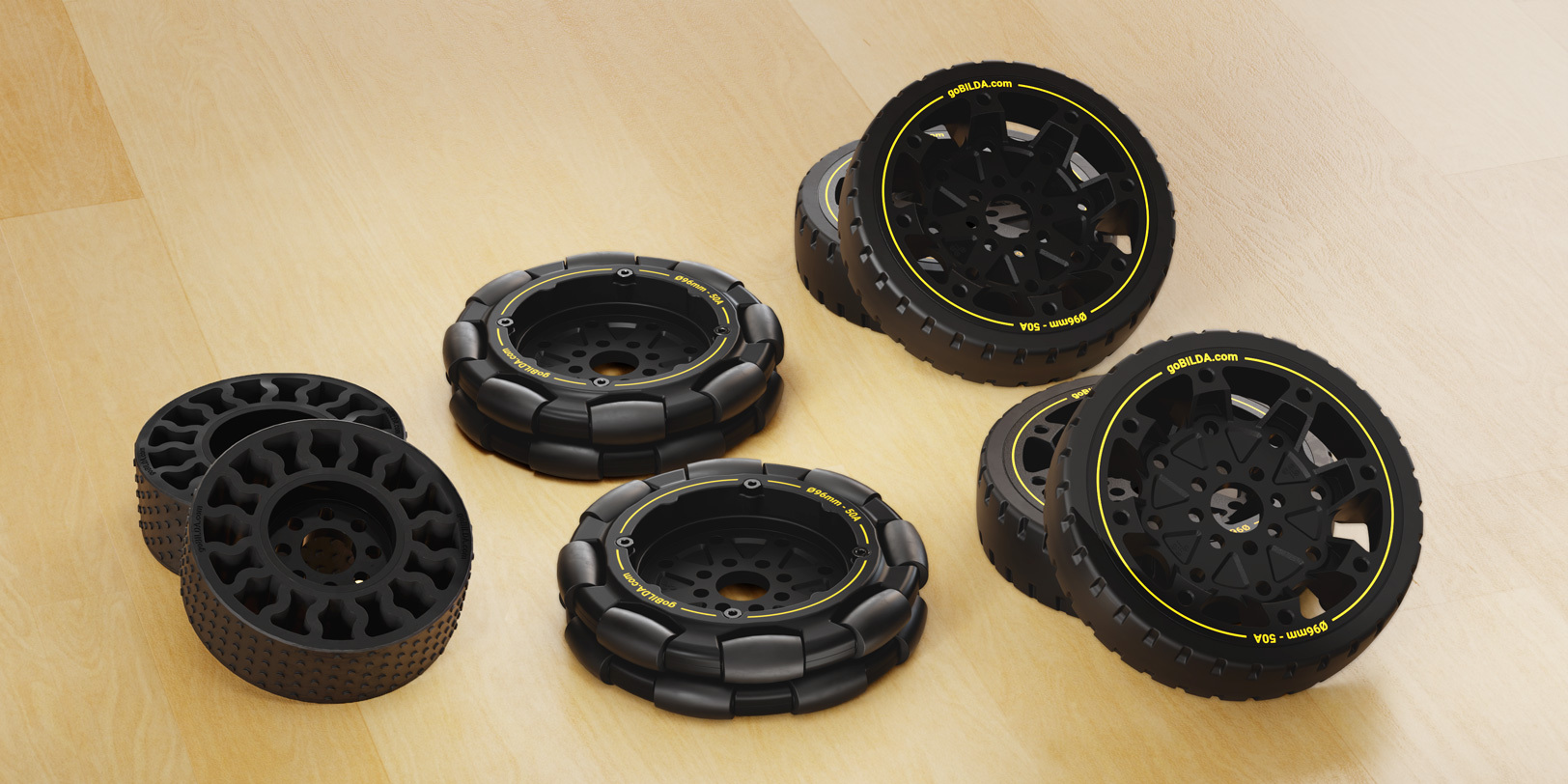 | Qty: 2 | 96mm Omni Wheel (14mm Bore, 50A Durometer) | SKU: 3624-0014-0096 x 2 |